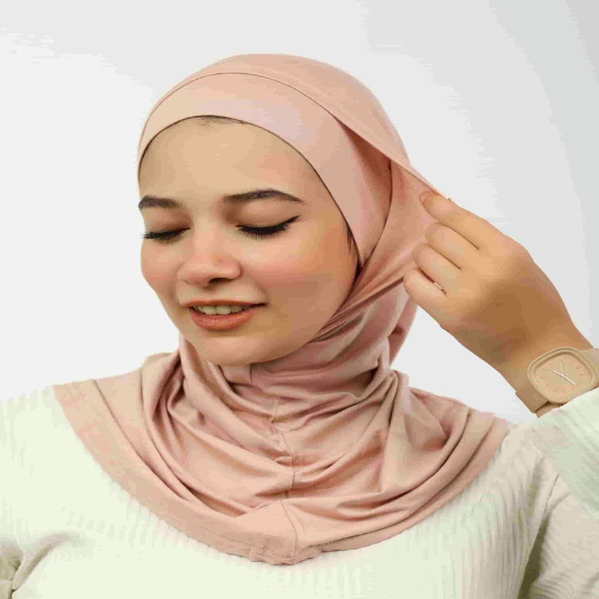 Quick, easy hijab alternative with soft, stable wear.